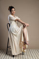 Elevate your elegance with our color block hand-embroidered maxi dress, crafted from luxurious linen blend fabric. This exquisite piece combines timeless style and intricate detailing, ensuring you make a statement at any occasion.