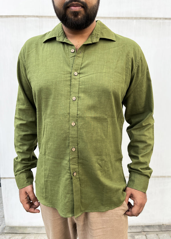 Olive Green Cotton Full Sleeve Men Shirt